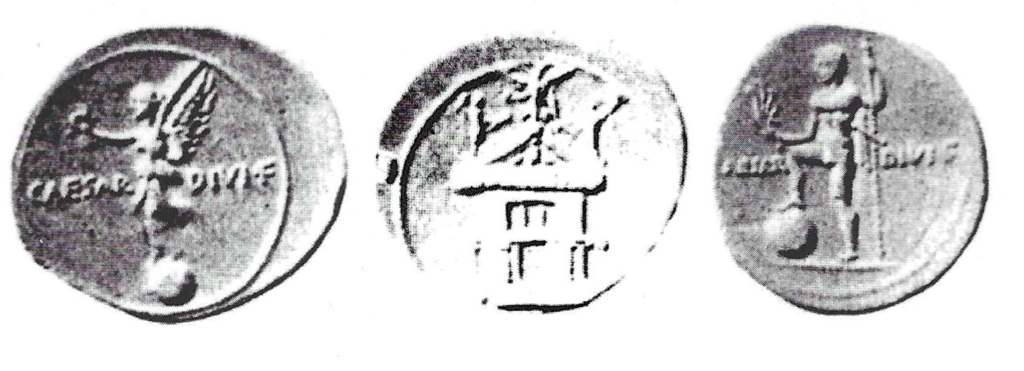 this occasion he climbed the steps of the Capitolium on his knees, neither casting his eyes upon the chariot dedicated to Jupiter in his honour, nor upon the image of the oikoumene [literally ‘the inhabited world’] lying beneath his feet, nor upon the inscription which it bore; but later he had the word ‘demi-god’ erased from the inscription.