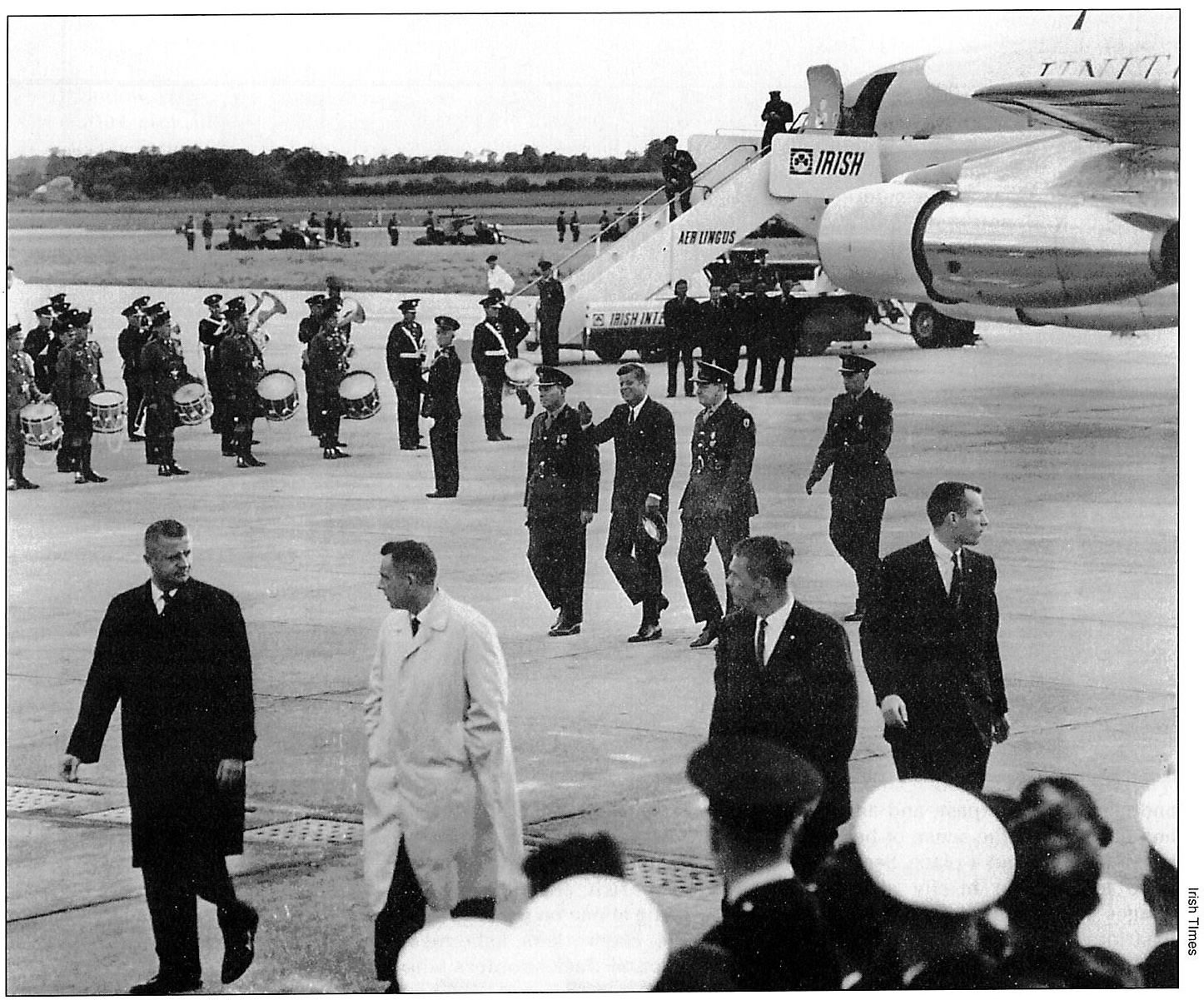 Kennedy’s charismatic personality, his commanding presence, ability to combine humour and seriousness, statesmanship with the common touch, made him a perfect performer for television. Accordingly, the visit was stage-managed by a public relations team who arrived ahead of the Presidential party. They ‘strongly expressed’ their wishes to the Department of External Affairs that the airport ceremonies should take place in the open and that press, radio and television representatives should be accommodated close by in a special enclosure on the tarmac. In contrast, the Irish Embassy in Washington warned External Affairs . about American journalists: ‘stern measures may be necessary on all public occasions to keep them in order. They are accustomed to taking more liberties in the US than their brethren in Ireland would dream of doing and it is to be feared that they will behave in the same fashion when they get to Ireland.’ In accordance with his policy of maximising photo opportunities, Kennedy travelled with President de Valera in an open car to Áras an Uachtaráin.