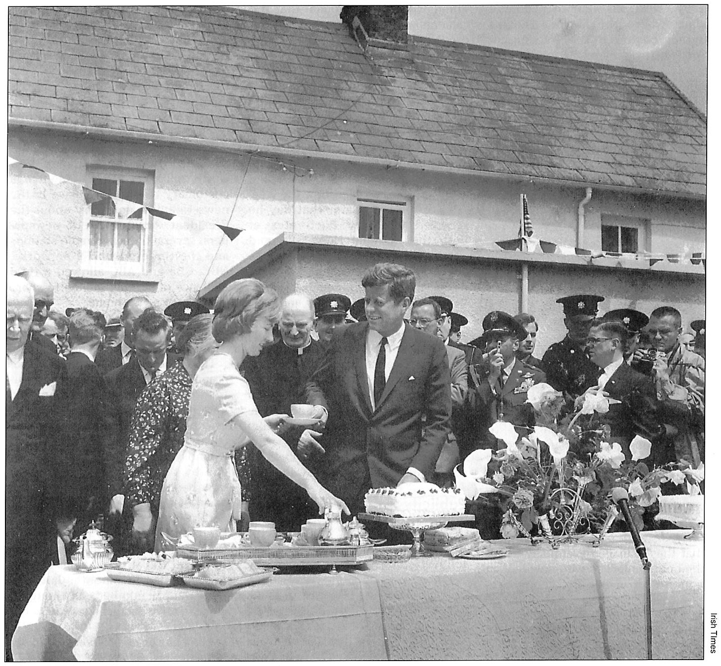 From New Ross, Kennedy travelled by motorcade to the ancestral home of his great grandfather in Dunganstown. Files relating to security on the visit refer to the gardai’s heightened concern because ‘of a serious breakdown in the policing’ during former president Dwight Eisenhower’s visit to Wexford the previous August. Kennedy’s second cousin once removed, Mary Ryan, had assured gardai that only twenty people would be invited to the house including the parish priest and curate. Despite the crushing crowds, pictures of Kennedy having a cosy chat over tea with his cousin Mary were relayed throughout the world. Reports from Irish embassies record that photographs of the meeting touched the hearts not just of emigrants in America but of people throughout the world.