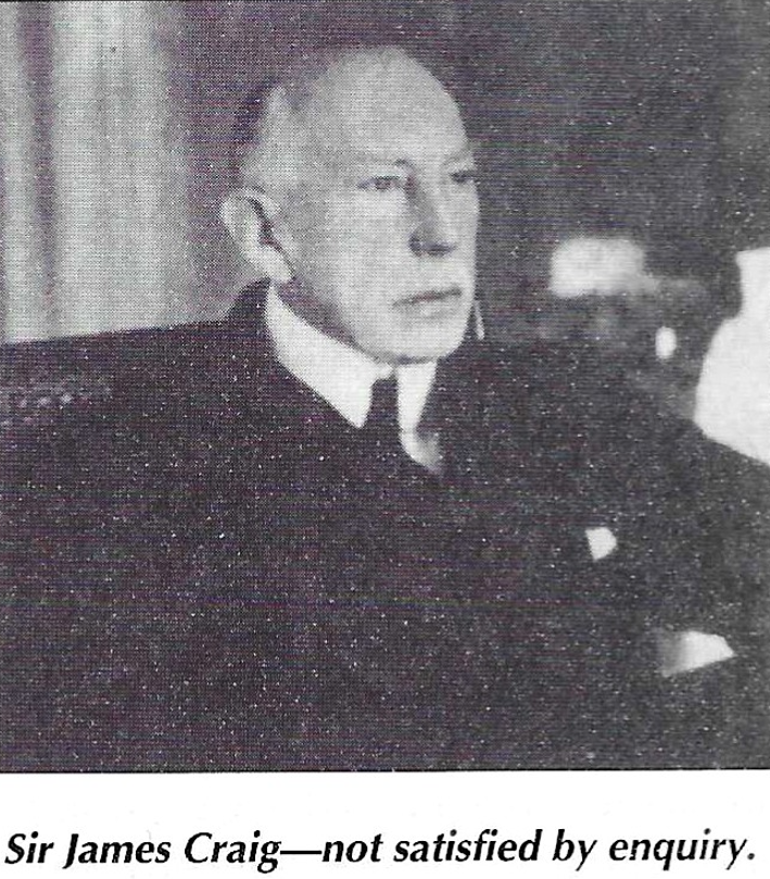 On 28 August 1922 an official at the Ministry of Home Affairs, R.D. Megaw broke the news to Prime Minister Sir James Craig: