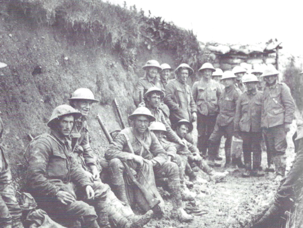 A ration party of the Royal Irish Rifles resting in a communications trench at the Somme, 1 July 1916.