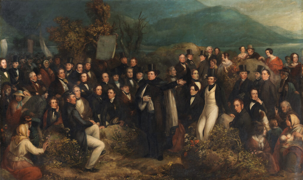 Spectacular drone footage swept over Kerry, and the O’Connell family seat at Derrynane that he would inherit: the O’Connells were rare as Catholic landlords. On a schoolroomish map, the ‘lands planted and confiscated by Britain’ end with Cromwell in 1652. Though ‘rich in culture, the Irish poor of O’Connell’s day live in primitive conditions’ as documented by ‘later photographs’. The above-mentioned one is shown. Is this honest? The Enlightenment projects optimism, but then in sensationalist images the French Revolution ends the old régime in 1789. Reduced to mobs, regicide and Terror, we heard nothing of the transformative processes of politicisation, agitation and radicalisation which would empower Irish Catholics. In Dublin, weeks before Louis XVI was guillotined, the ground-breaking Catholic Convention had convened. A Tralee delegate, Dominick Rice, may be the barrister of that name who signed O’Connell’s own King’s Inns memorial in 1798, and he knew that prominent family. Revolution ‘strikes Ireland’ that year, but through arms (and not two decades of popular politics voicing democratic visions). As ‘Theobald Wolfe Tone leads the Irish in a rebellion to overthrow British rule’ (while in France!), we drone over Vinegar Hill: ‘30,000 rebels are killed’; cautious estimates include countless civilians. We heard nothing of Tone’s initial moral-force argument on behalf of Irish Catholics, nor of the pre-revolutionary campaigning for civil and political liberties of the United Irishmen, whom O’Connell claimed he had later joined. We jumped to the 1820s, and it was asserted that he wished to ‘implant new ideas, that all men are born equal’: these supposed words of his were overlaid on a shot of the Liffey. But that foundational principle had been irreversibly projected to the world from America when Dan was in his infancy in 1776. Planted in Europe, it transformed Irish Protestant reformers by denouncing the archaic Penal Laws oppressing Catholics and preventing nationhood. And he referenced that iconic principle of the Declaration of Independence when addressing the shame that Irish-American slavery apologists should feel. This was not discussed in The Emancipator, created during the concurrent anniversary of American independence.