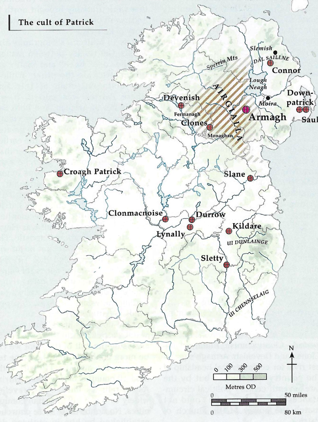 What does this investigation tell us about Patrick? Little directly, but by analysing the cult of the saint we can be more confident that the home territory of his ministry lay within the modern counties of Down and Antrim. As he tells us himself he travelled widely to reach his Christian communities. No doubt there were churches established by him in outlying districts of which Armagh is likely to have been an important one. But, as has been suggested, it was good fortune—and astute politics—rather than any status conferred on it by Patrick that allowed Armagh to emerge as the most important church in Ireland by the end of the seventh century.