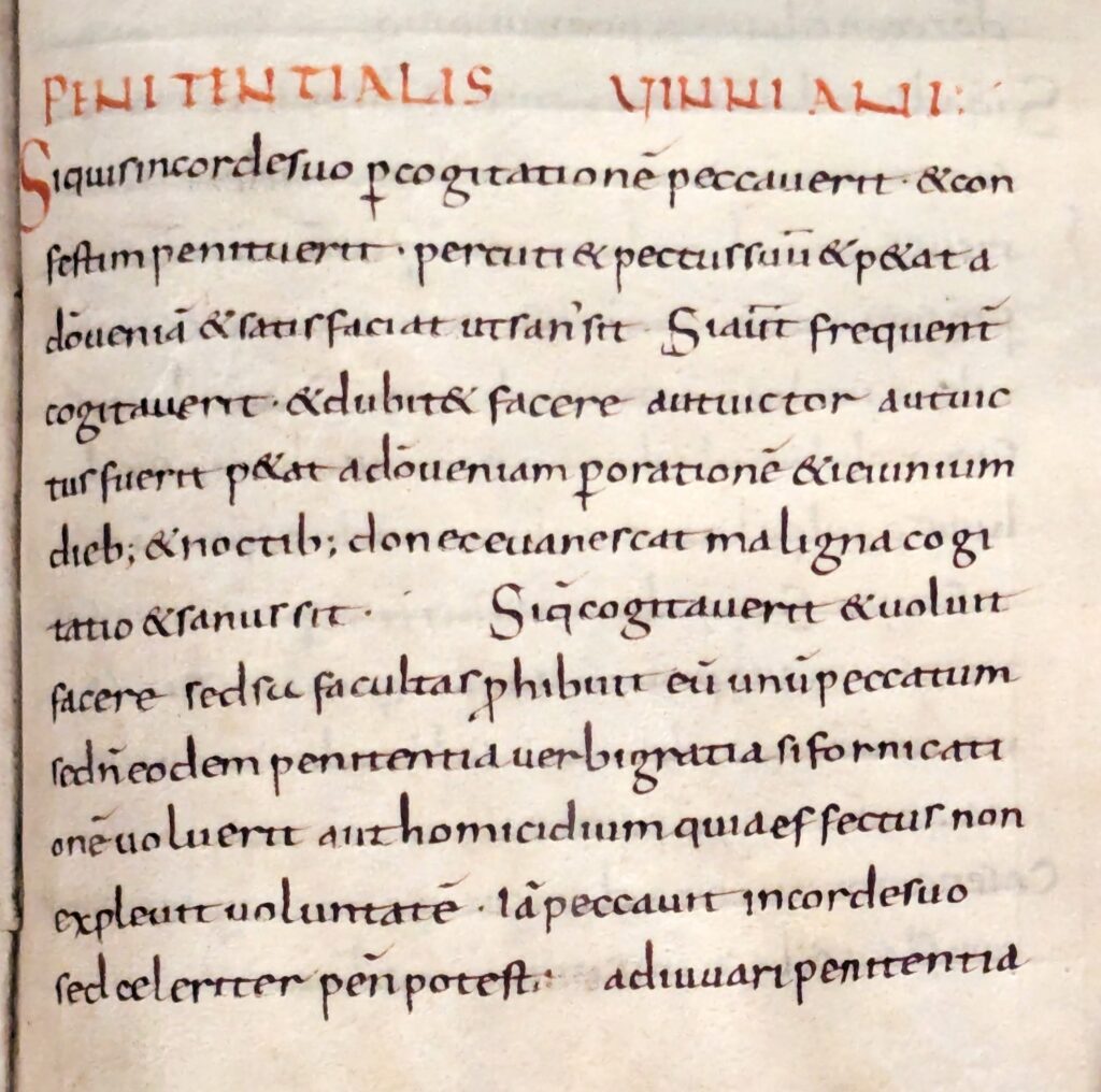 Columbanus had already left the kingdom of his birth in Leinster. Permanently leaving home was a spiritual exercise, and those peregrini who went into exile beyond Ireland itself were considered particularly ascetic. St Columba, for example, who was reputedly a pupil of Finnian at Movilla, left Ireland for Iona in 563. That island was still part of the Irish kingdom of Dál Riata, though. The voyage of Columbanus launched a farther-reaching pilgrimage. It also constitutes the earliest known export of books from the ‘island of saints and scholars’. Among the manuscripts on board the boat was a copy of the Penitential of Finnian, the oldest book in the Latin West to codify detailed tariffs (such as periods of fasting) to atone for specific sins. Finnian had died in 579 but it was probably at Movilla that Columbanus copied his work. Movilla is also where Columbanus could have gained access to correspondence (which he later quoted) between Finnian and the aforementioned Gildas.