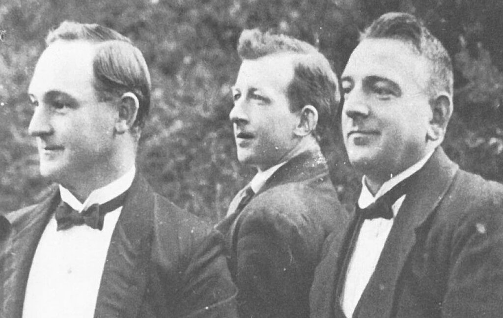 Above: The Francis brothers, Owen (left) and Griffith (right), with piano accompanist Bob Owen (middle), who performed in 2RN’s ‘St David’s Day Special Programme’, broadcast on Friday 4 March 1927. (Francis family)