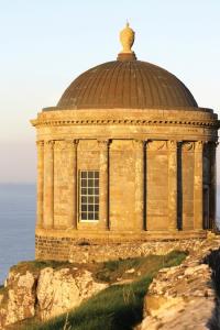 The remnants and ruins of Hervey’s vast building projects still punctuate the landscape of Ulster—he ordered the building of stately glebe houses and added elegant spires to plain Protestant churches, determined, as he wrote, ‘to make the County of Derry look like a gentleman’. Most gentlemanly of all are the magnificent ruins at Downhill, where Hervey built a princely pleasure dome for himself and for his growing art collection, acquired on his frequent Continental tours. Some readers will be familiar with Mussenden Temple, the bishop’s library, a replica of the Roman Temple of Vesta perched precariously on the jagged basalt cliffs of the Causeway coast (now a popular venue for Ulster weddings). He was addicted to round buildings, and even had plans at Downhill for a ‘classical dog kennel’—complete with domed roof, Doric columns and ornamental canines atop—so that even the hounds would inhabit perfectly proportioned edifices. His invitation to William Hamilton to visit Downhill, what he called ‘my temple of the winds’, articulates his creation of a sanctuary of gentlemanly pleasures and aesthetic delights: