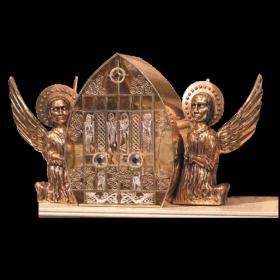 The sanctuary houses two seventeenth-century chairs. They are both made of bog oak or black oak and intricately carved. The oldest dates from 1661 and was made for Archbishop Bramhall just after the restoration of Charles II, hence the carving of the monarch’s crown. The second chair dates from 1664 and was made during Archbishop Margetson’s time as primate. This chair differs in that it contains no Christian or Anglican symbology. It is thought that it was made for a person whose initials were ‘PMO’ or ‘RMO’, found on the left-hand panel of the chair. Both chairs are regularly used, most recently by the Catholic and Protestant archbishops during the Maundy Thursday ceremony.