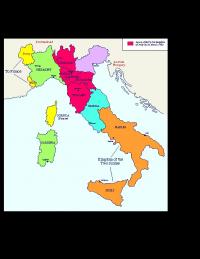 Up to the mid-nineteenth century Italy was not a united sovereign nation but a patchwork of small independent states, each influenced to a greater or lesser degree by neighbouring powers such as France or Austria. A unification movement (Risorgimento) took hold in the 1850s, however, and included among its leaders Giuseppe Garibaldi and Giuseppe Mazzini. Key to their aims was the annexation of the Papal States, a territory situated like a wide belt across the middle of the Italian peninsula. With no viable military force to protect his lands, an increasingly worried Pope Pius IX issued a call to Catholics throughout Europe for men and arms to raise an army in his defence.