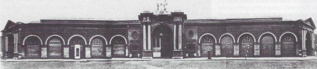 The site chosen was beside the old Ormonde Market. This had been set up by two viceroys, Lord Essex and the Duke of Ormonde, and the local landlord Sir Humphrey Jervis in the 1670’s. They laid out the first quays on the river, Ormonde Quay and opposite, Essex Quay. The market was called after Ormonde and the bridge after Essex, as was Capel Street (his family name). There is also a nearby street called after the landlord, Jervis. The market was just an open square but there was a circular building (called a rotunda) in the centre. The old site of the market is now called Ormonde Square and is surrounded by houses. On a 1912 map it appears that these houses were not yet built and that the old market place was still there but not in use.