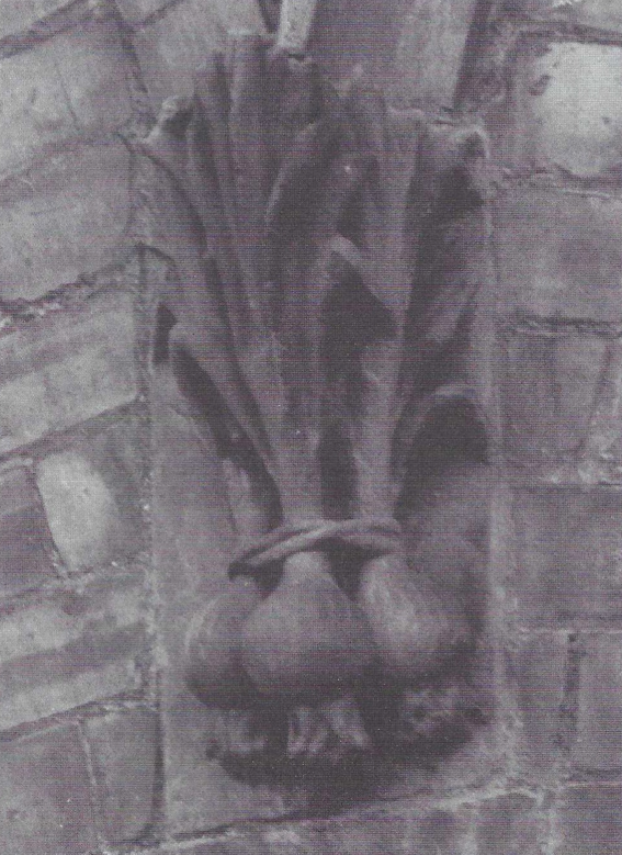 One of the building’s many details in the form of fruit or vegetables – in this case a bunch of onions.